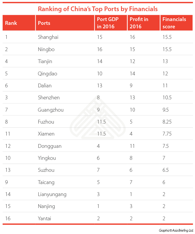 Shanghai, Tianjin, and Shenzhen ranked low for growth as they are already quite developed, and a one percent growth would mean a substantial increase in volume and handling capacity than for the smaller ports.