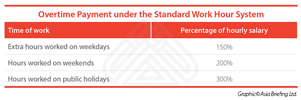 Overtime is applicable for hours worked above the standard set per cycle. Such rates match those of the standard work hour system for extra hours worked and work on public holidays. However, no rest day is outlined under this system.