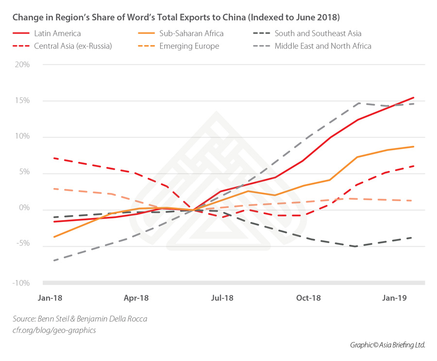 The BRI will almost certainly make China more prepared than the US when it comes to waging tariff wars. For example, Chinese businesses have been heavily investing in Africa over the past five years, establishing subsidiaries throughout the continent. These companies are domiciled as African, and are now poised to take huge trade advantages from the recent African Continental Free Trade Agreement (AfCFTA), which removes tariffs of 90 percent on all products traded across Africa. With DTAs also in place with many African countries, Chinese businesses are beginning an African trade bonanza. I wrote about the impact this would have in the article, “China’s African Moves through the Belt & Road, Double Tax Treaties, and AfCFTA”. So much for what President Trump dismissed as “shithole countries.” They are now replacing US producers for the China market.