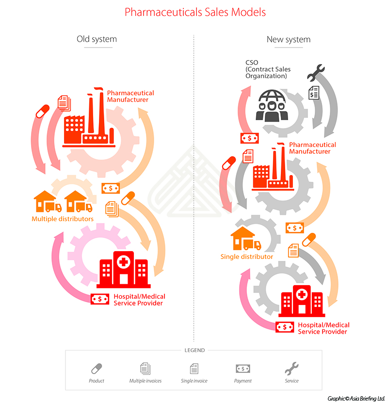 The new model will implicate contract sales organizations (CSOs), which serve as a means to replace commission or service fee arrangements, and will act as sales and promotional operators for manufacturers.