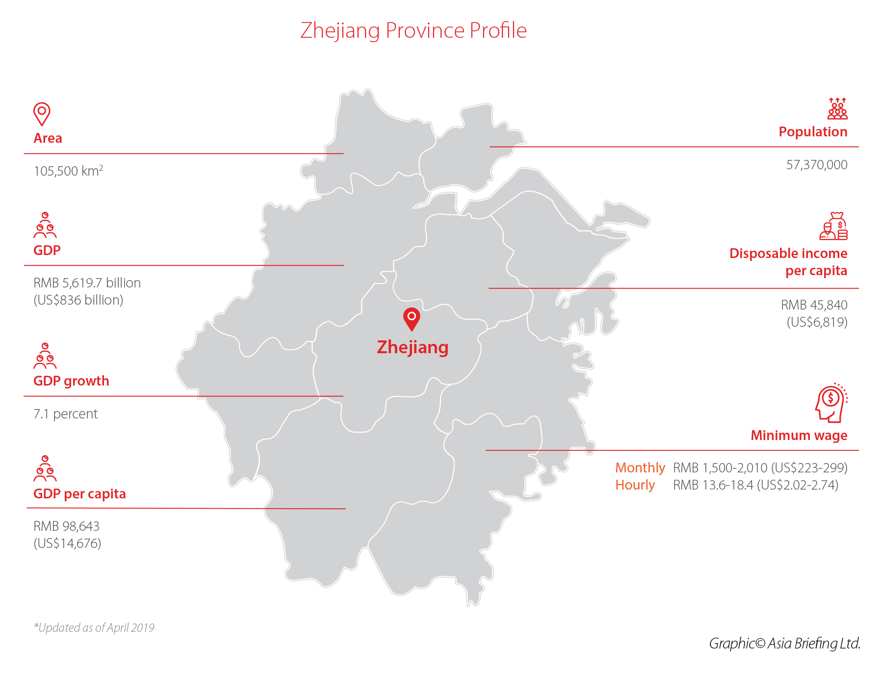The logistics strength, location, and presence of economic development zones, free trade zones, and export processing zones makes Zhejiang an ideal location for foreign companies.