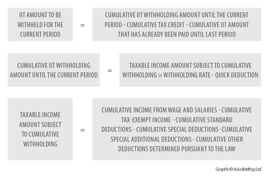 For resident taxpayers, the first four types of income are consolidated into a new category - comprehensive income and are subject to yearly computation (but employers are still required to compute and withhold the IIT on a monthly basis).