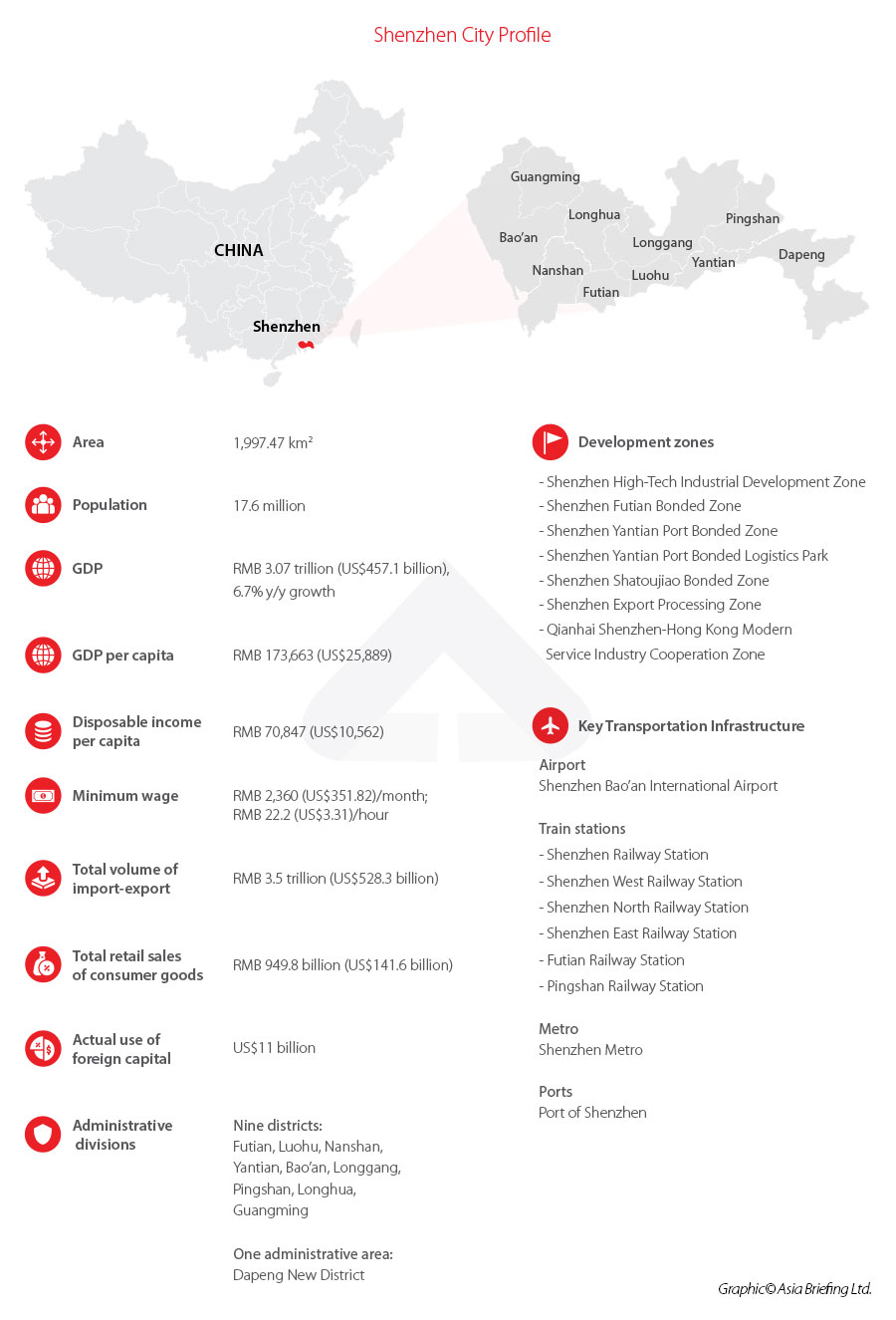 Often dubbed China’s Silicon Valley, Shenzhen is China’s fastest-growing city. It is ranked by the Chinese Academy of Social Sciences as the mainland’s top city for “overall economic competitiveness” and is China’s premier Special Economic Zone (SEZ) for foreign investment as well as a sub-provincial class city.